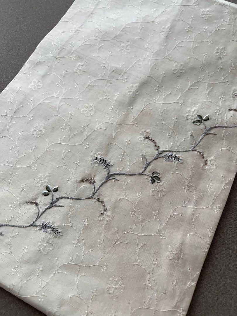 刺繍にビーズでとても可愛く、ナチュラルなデザインの帯です。