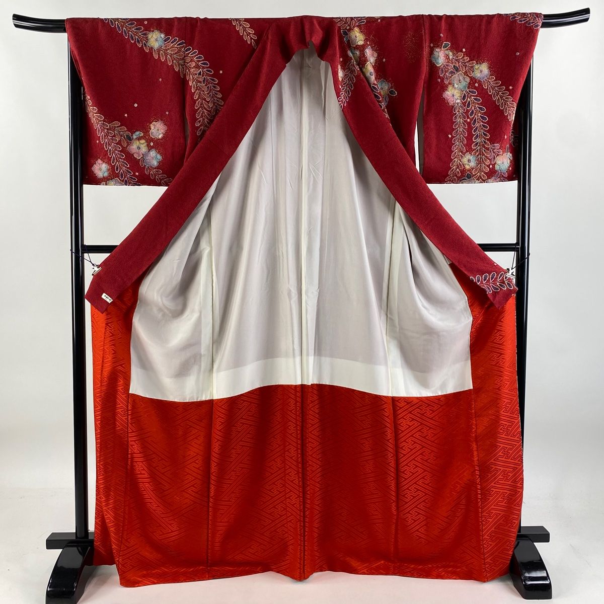 訪問着 身丈163cm 裄丈63.5cm S 袷 辻が花柄 草花 ぼかし 小豆色 正絹 秀品