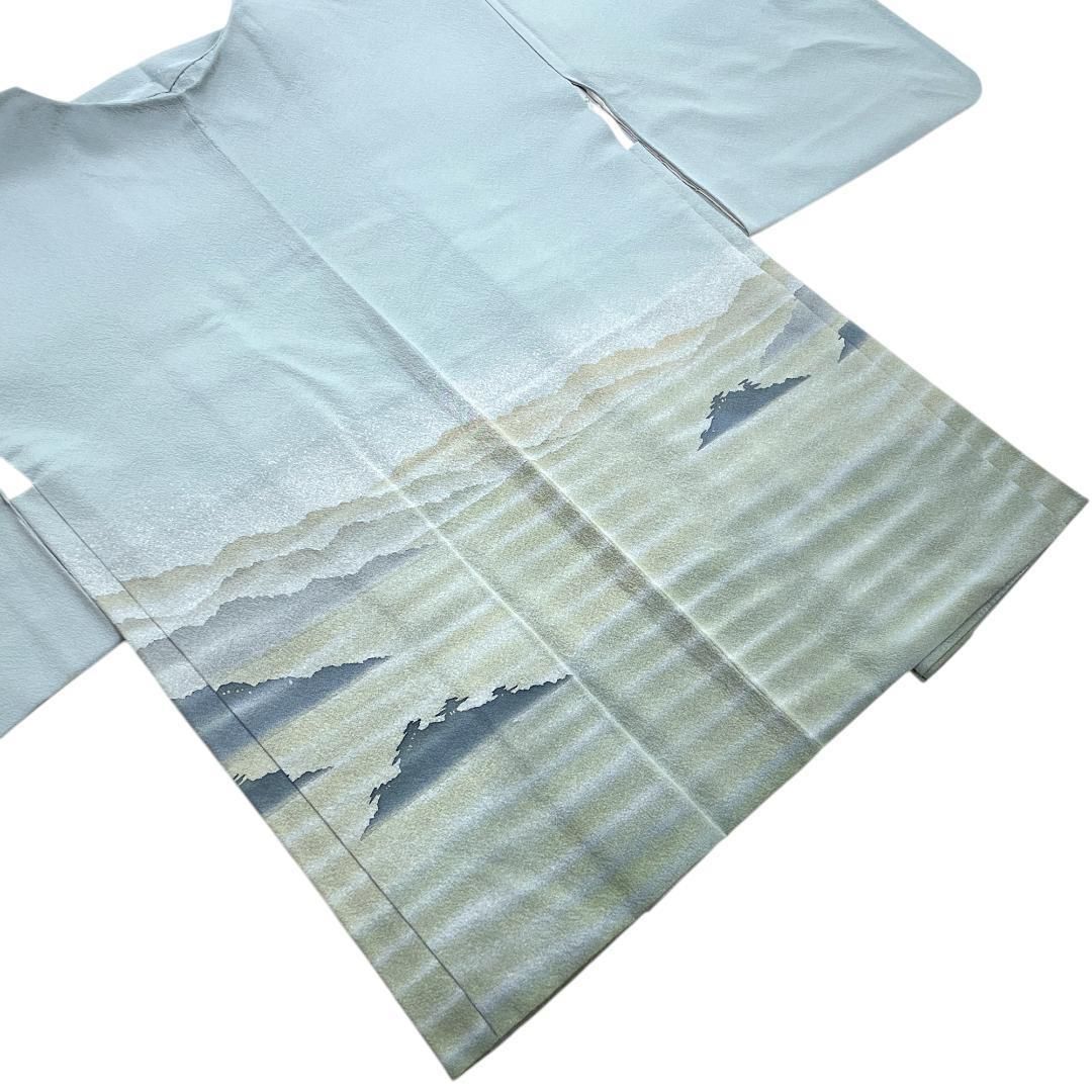 羽織 絵羽織 正絹 ちりめん地 瀬戸内の風景 淡いブルーグレー 本鼈甲の羽織紐留き 着物 kimonolove リユース品 オゾン消臭サービス A-2177 GLOBALQUALITYIMPORTS_COM