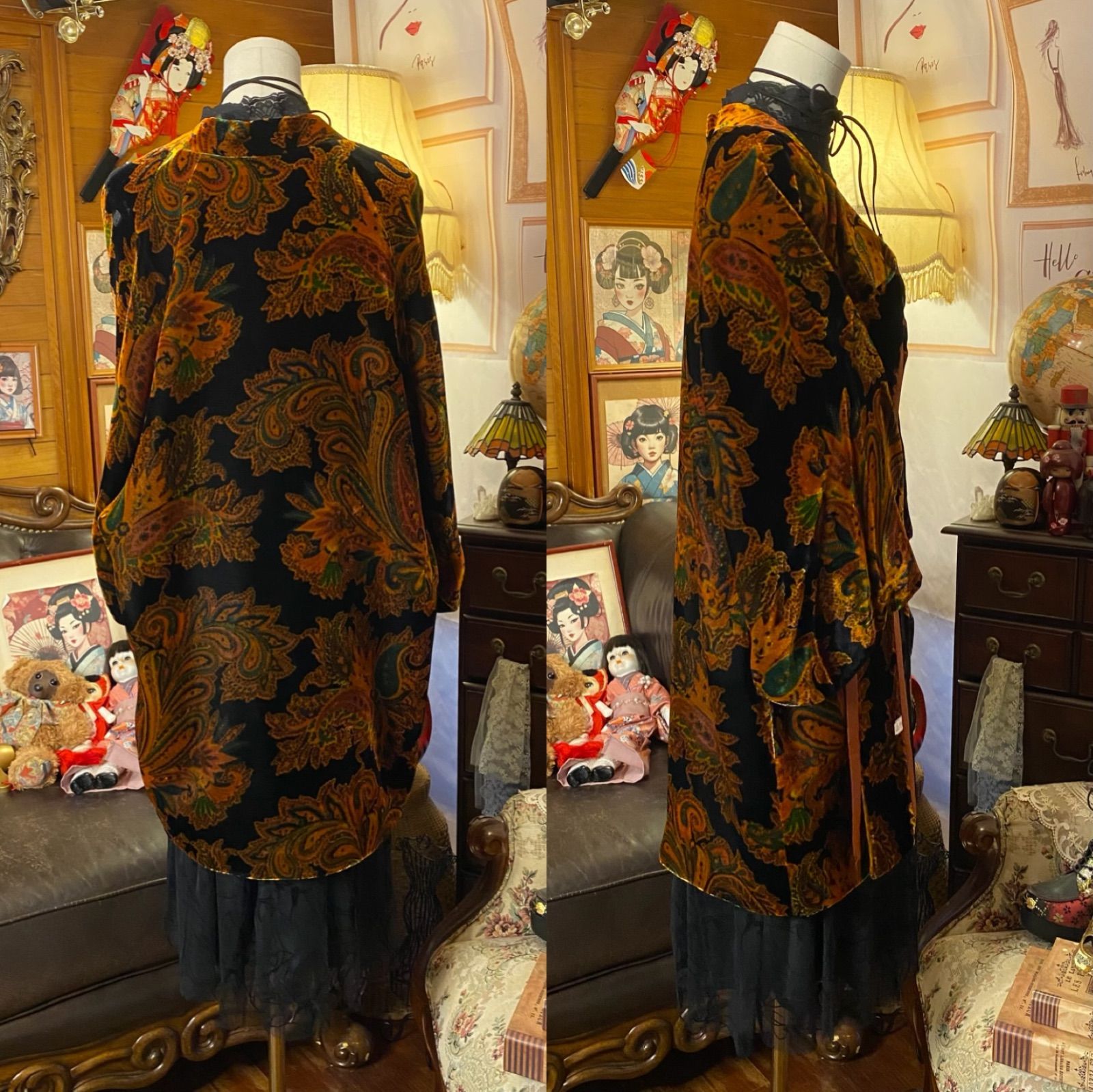和洋折衷コーデ ベロア和装コート セレクト5点セット 黒×琥珀ペイズリー C-664の検索結果