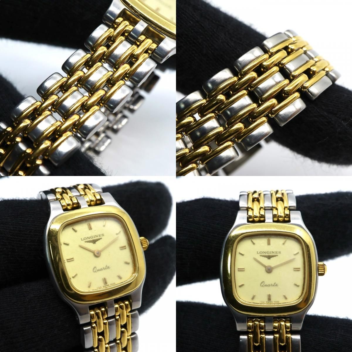 稼働品 電池交換済 ロンジン LONGINES 腕時計 7445 レディース クオーツ アナログ スクエア ゴールド文字盤 コンビブレス ヴィンテージ クラシック エレガント ドレスウォッチ SWISS MADE クリーニング済 G2 GLOBALQUALITYIMPORTS_COM