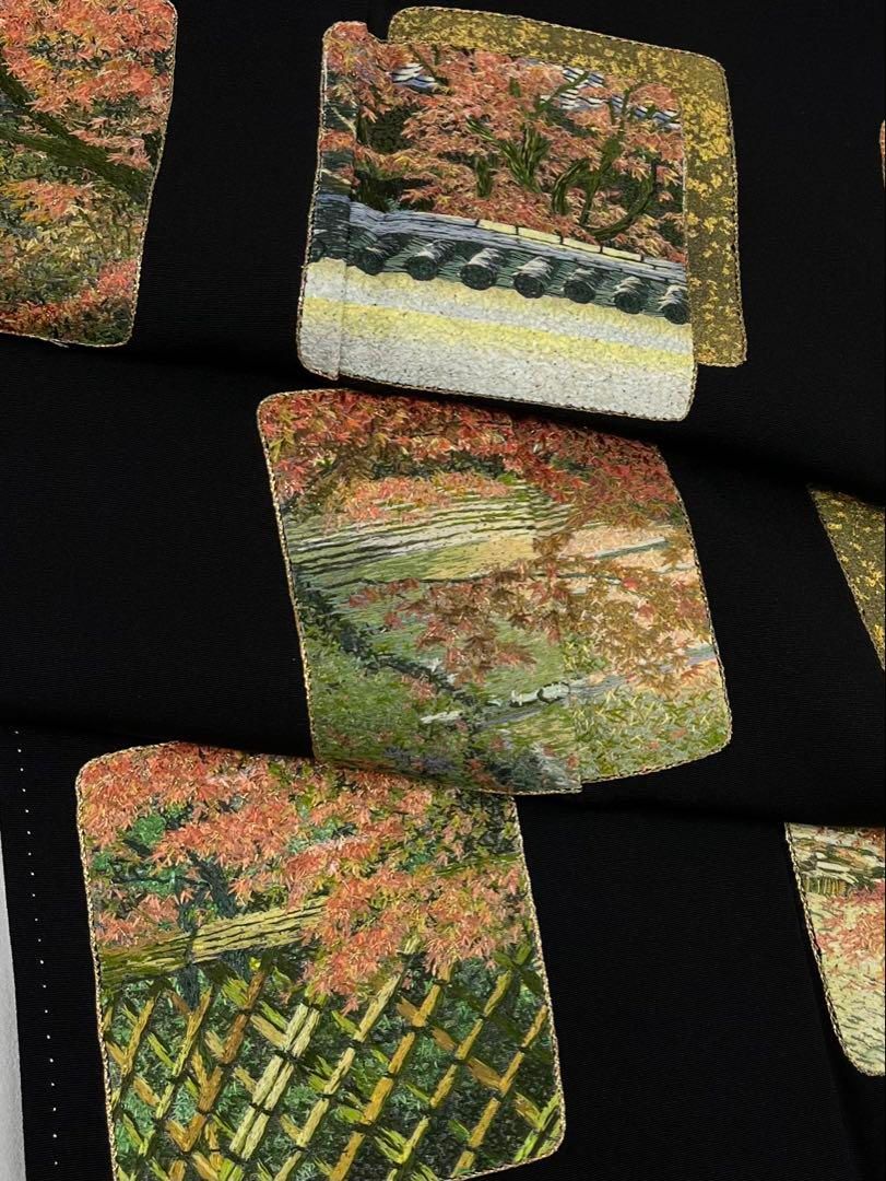 乱針刺繍 落款入 黒留袖 比翼仕立て 風景画 細密 正絹の検索結果