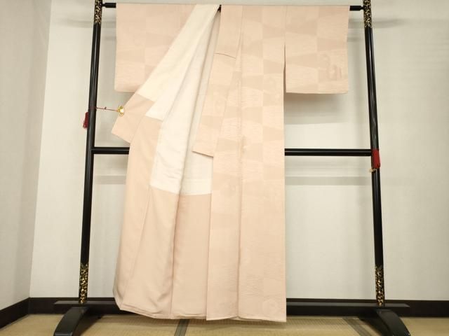 色無地 身丈158cm 裄丈65cm M 袷 押田正義 落款 地紋 ピンク 正絹 秀品 一つ紋