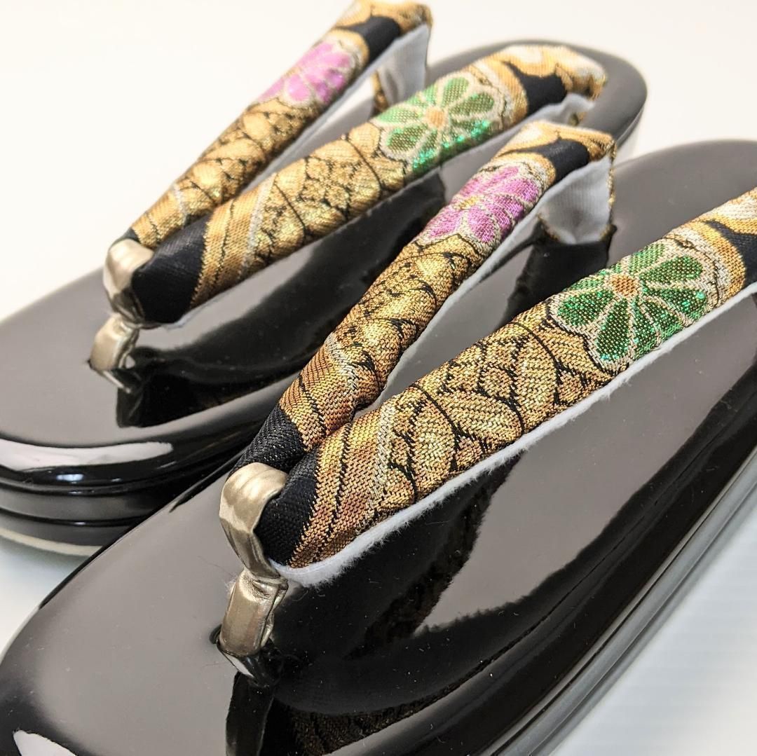 草履バッグセット 振袖用 帯地 黒 金 ゴールド 古典 フリーサイズ w49-3の検索結果