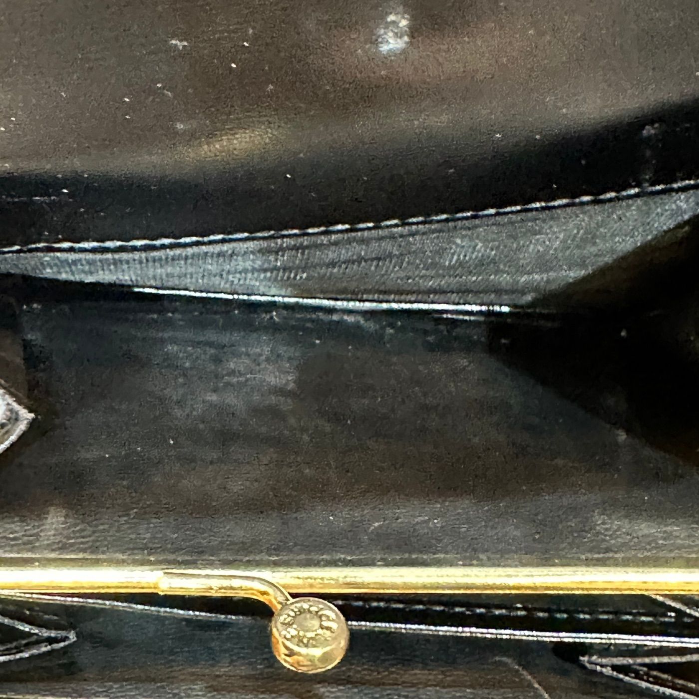 CELINE セリーヌ 三つ折り財布 がま口 ヴィンテージ ロゴ リング 金具 カーフ レザー 本革 三つ折り 財布 ミニ ウォレット ブラック 黒 GLOBALQUALITYIMPORTS_COM