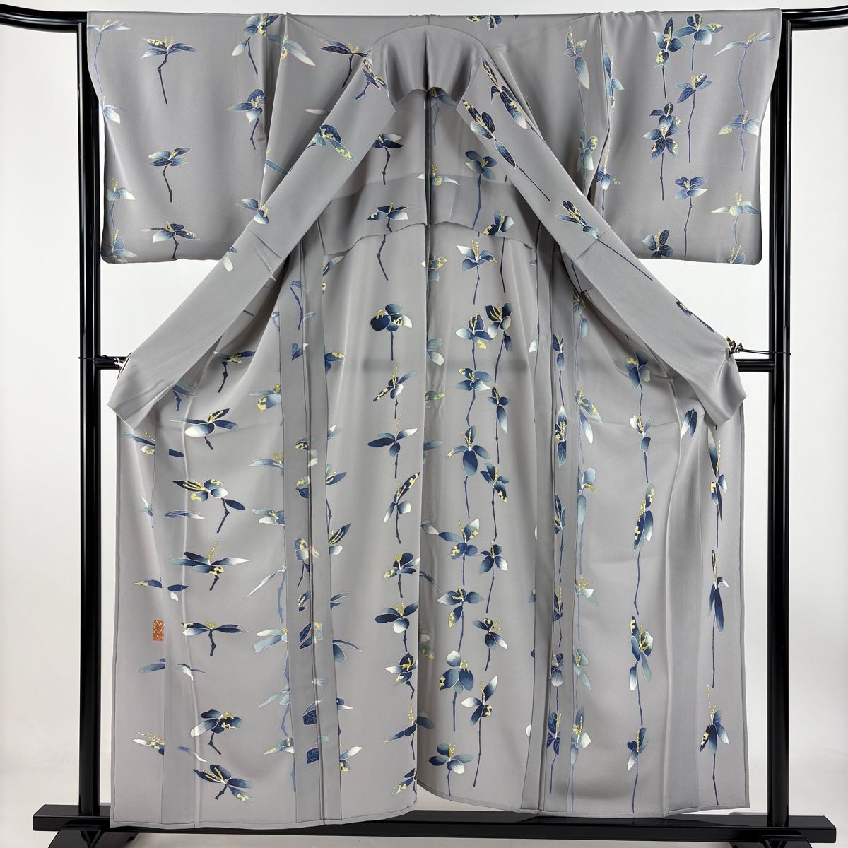 付下げ 身丈157.5cm 裄丈66.5cm M 単衣 由水煌人 落款 花 灰色 正絹の検索結果