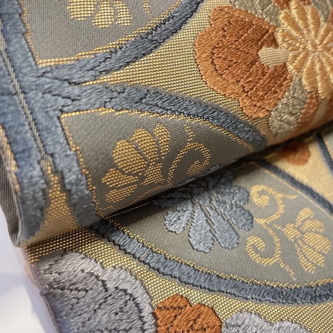 袋帯 菱七宝 金 卒入式 灰青 花 r862の検索結果