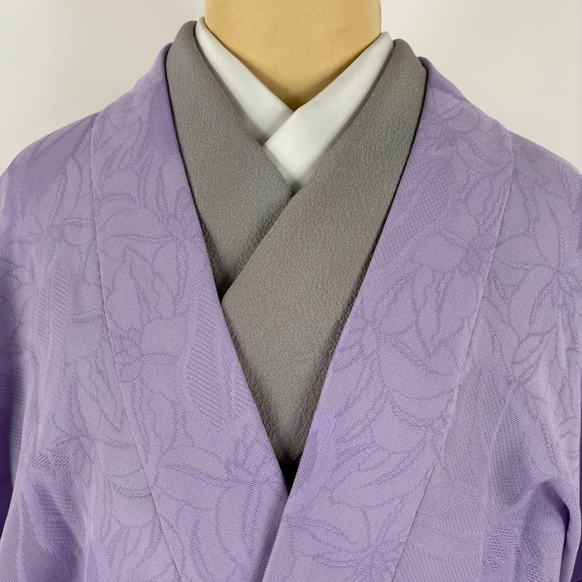 道行 身丈96.5cm 裄丈66.5cm M 和装コート 角衿 草花 灰色 正絹 秀品
