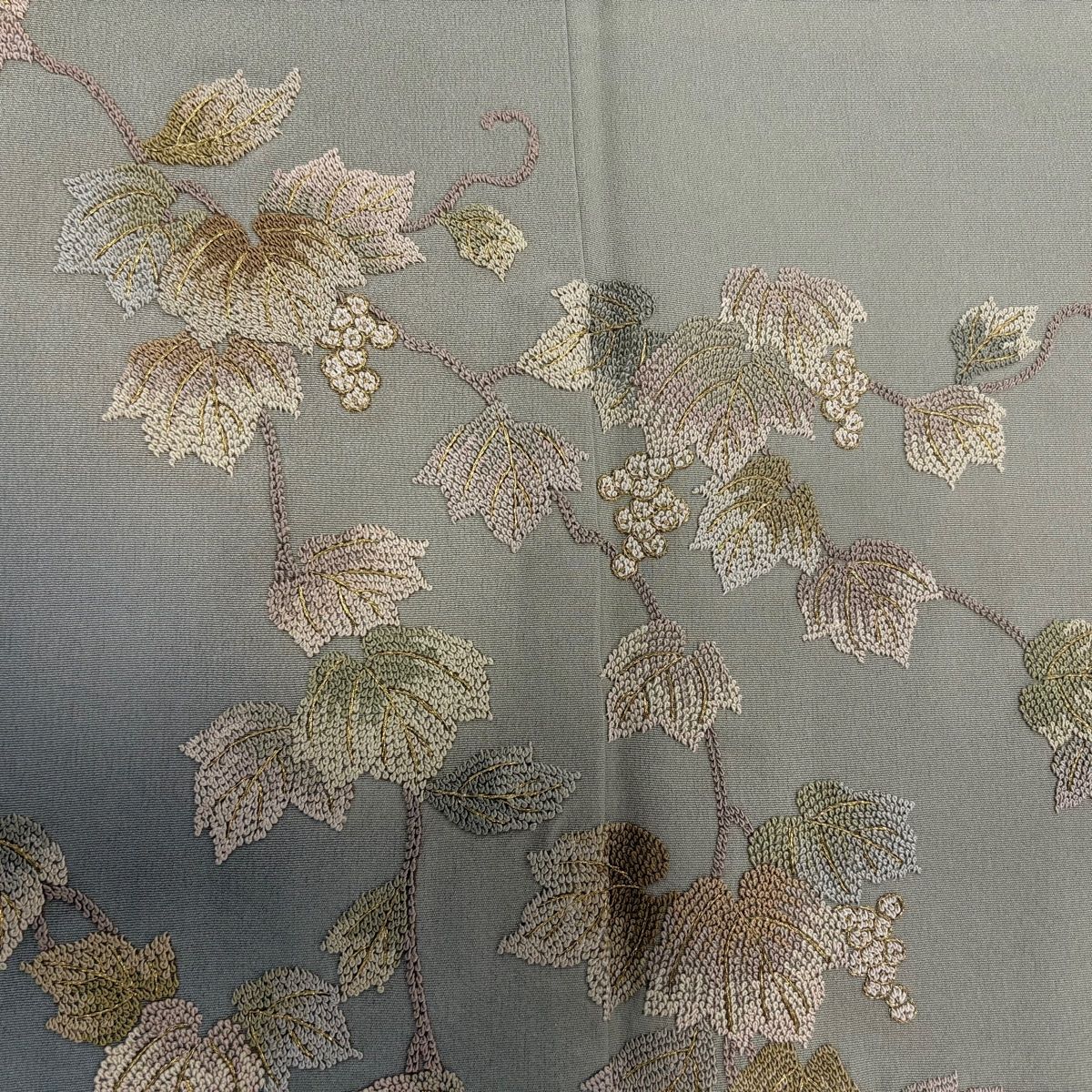 訪問着 身丈161.5cm 裄丈65cm M 袷 葡萄 金糸 刺繍 灰緑 正絹の検索結果