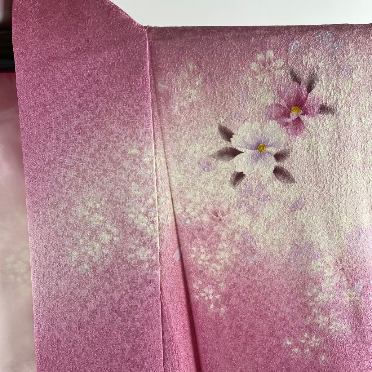 振袖 身丈157.5cm 裄丈65.5cm M 袷 桜 波 銀通し 箔 ピンク 正絹 GLOBALQUALITYIMPORTS_COM