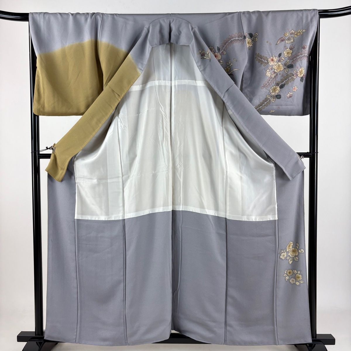 訪問着 身丈160.5cm 裄丈65cm M 袷 松 波頭 金糸 金彩 灰緑 正絹 秀品