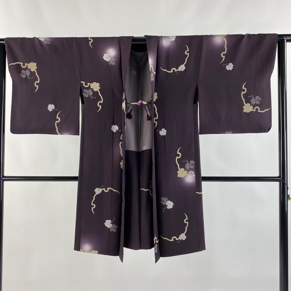 羽織 身丈100cm 裄丈65cm M やまと 雪輪 葉柄 銀彩 ぼかし 濃紫 正絹の検索結果