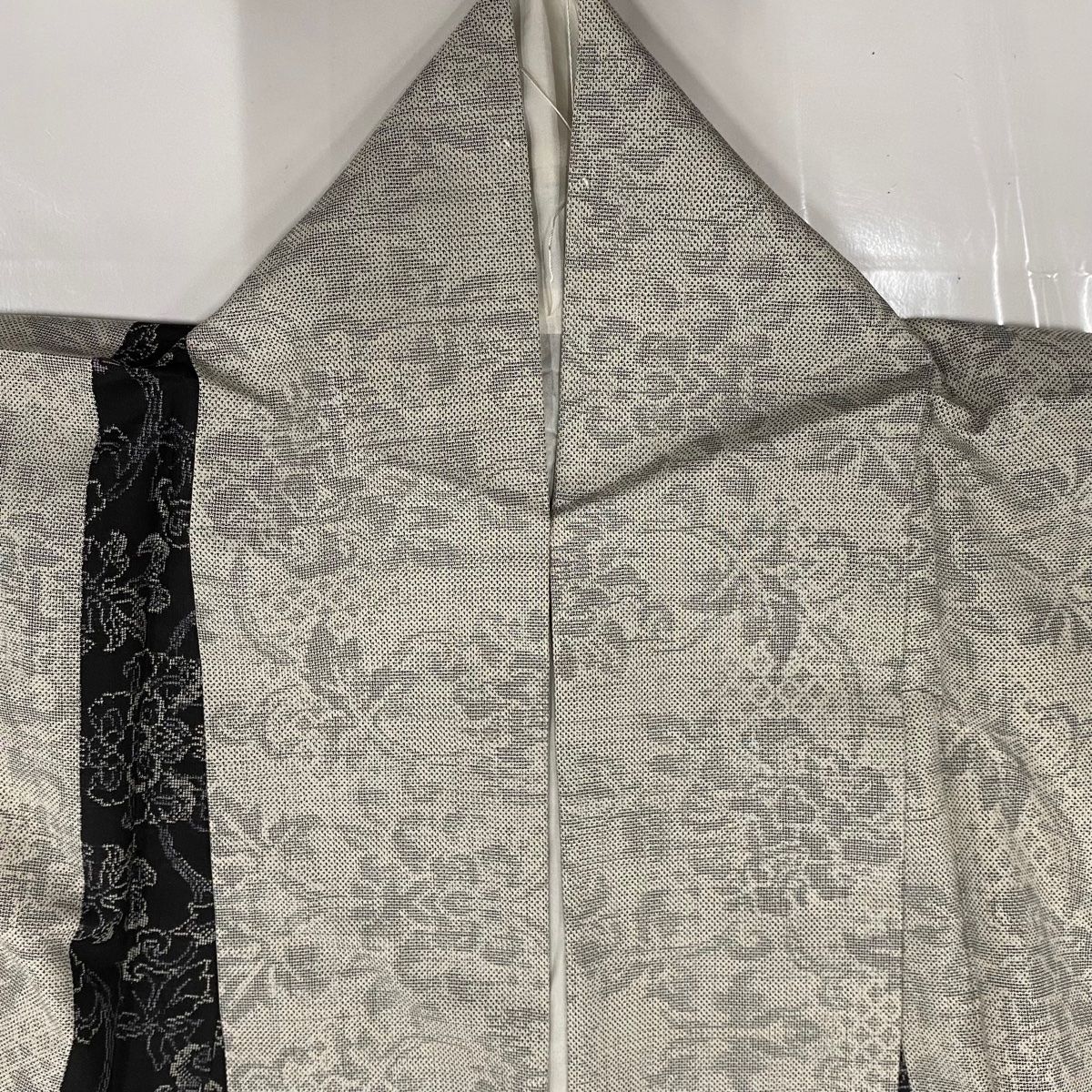 紬 身丈170cm 裄丈67cm M 袷 花唐草 縦縞 灰色 正絹 秀品の検索結果