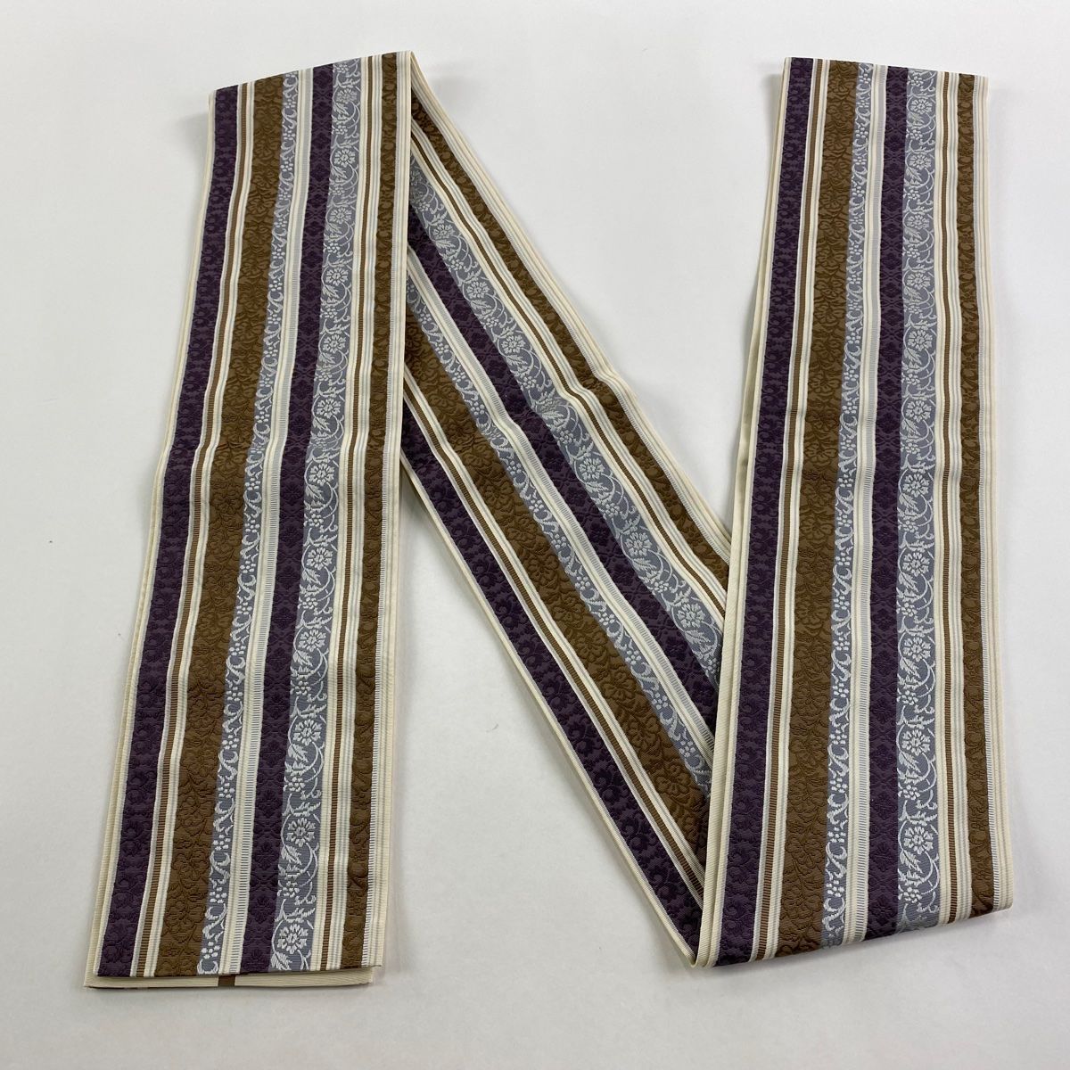 半幅帯 秀品 縞 花唐草 クリーム 正絹 GLOBALQUALITYIMPORTS_COM