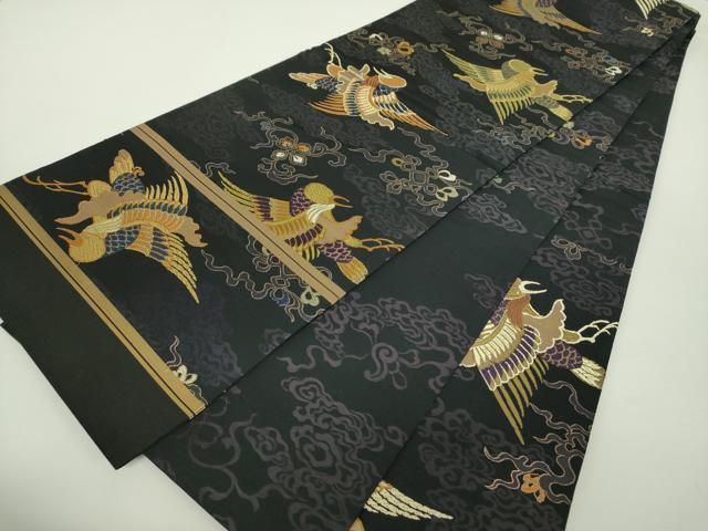 平和屋着物 アンティーク 大正ロマン 丸帯 引き抜き帯 唐織 花鳥文 黒地 金糸 正絹 DAAY1258psの検索結果