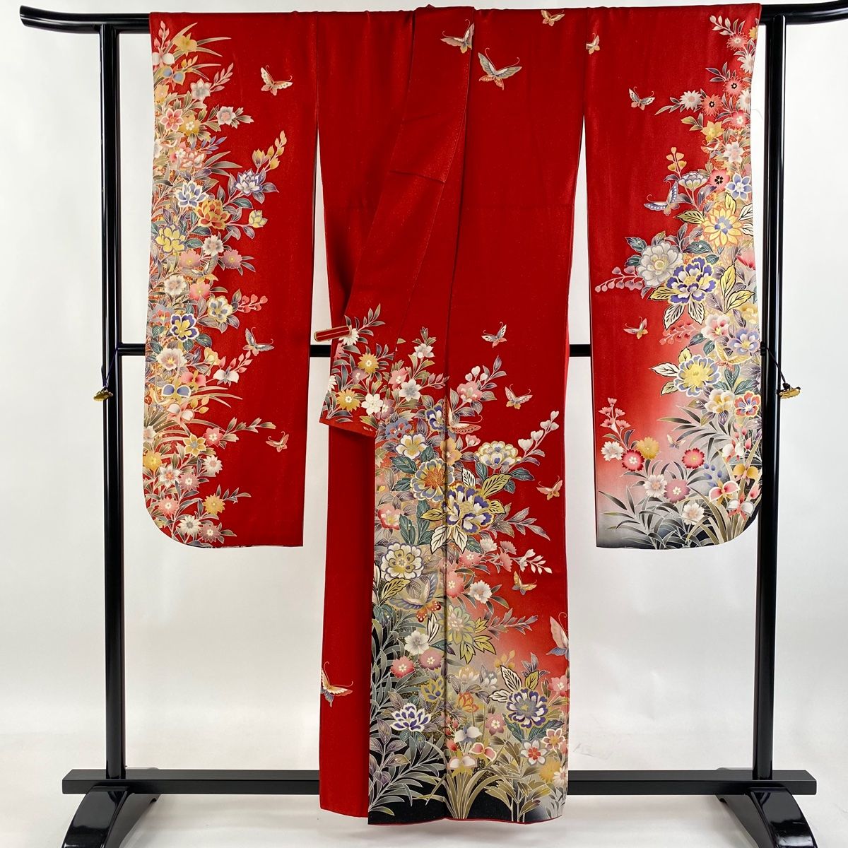 振袖 身丈157.5cm 裄丈62.5cm S 袷 草花 蝶 金糸 銀通し 赤 正絹の検索結果