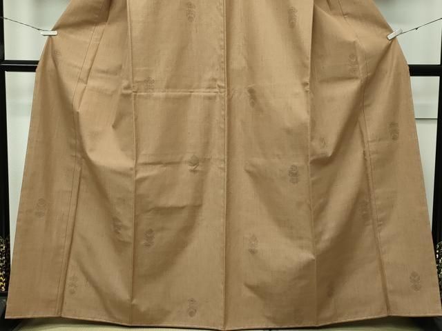 平和屋着物 上 石川県指定無形文化財 牛首紬 白山工房 手織り 単衣 間道 利休白茶色地 CZAA3577s5