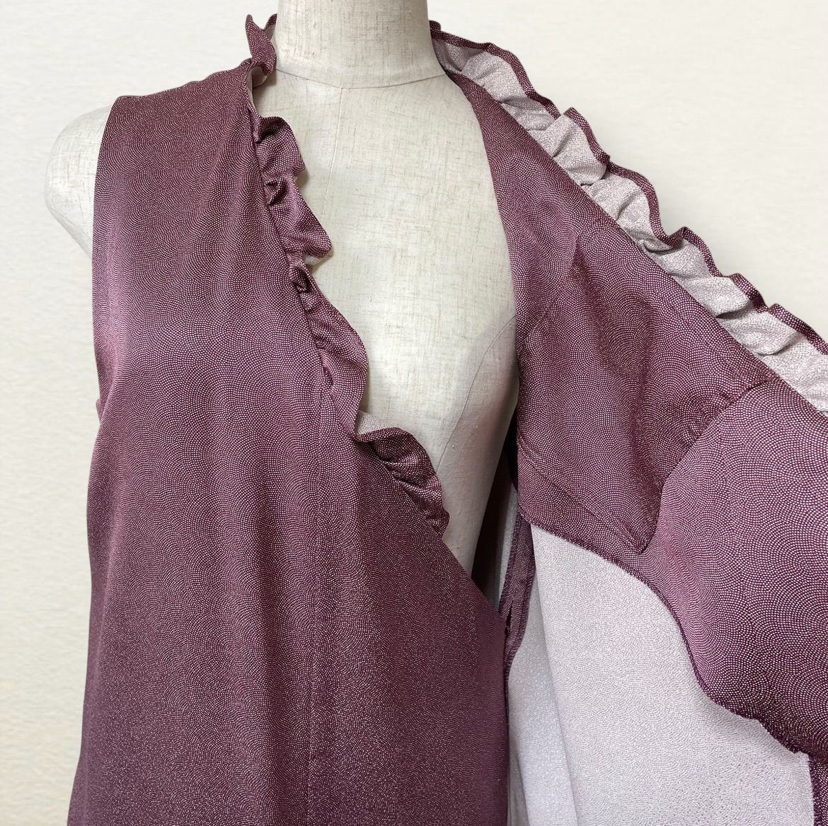 Newデザイン ︎江戸小紋 サッシュベルト付き Kanataの茶道ドレス 落ち着いた暗めの赤が大人な雰囲気 鮫小紋のお着物で作った 茶道お稽古着 手提げ袋付 逆勝手兼用 GLOBALQUALITYIMPORTS_COM