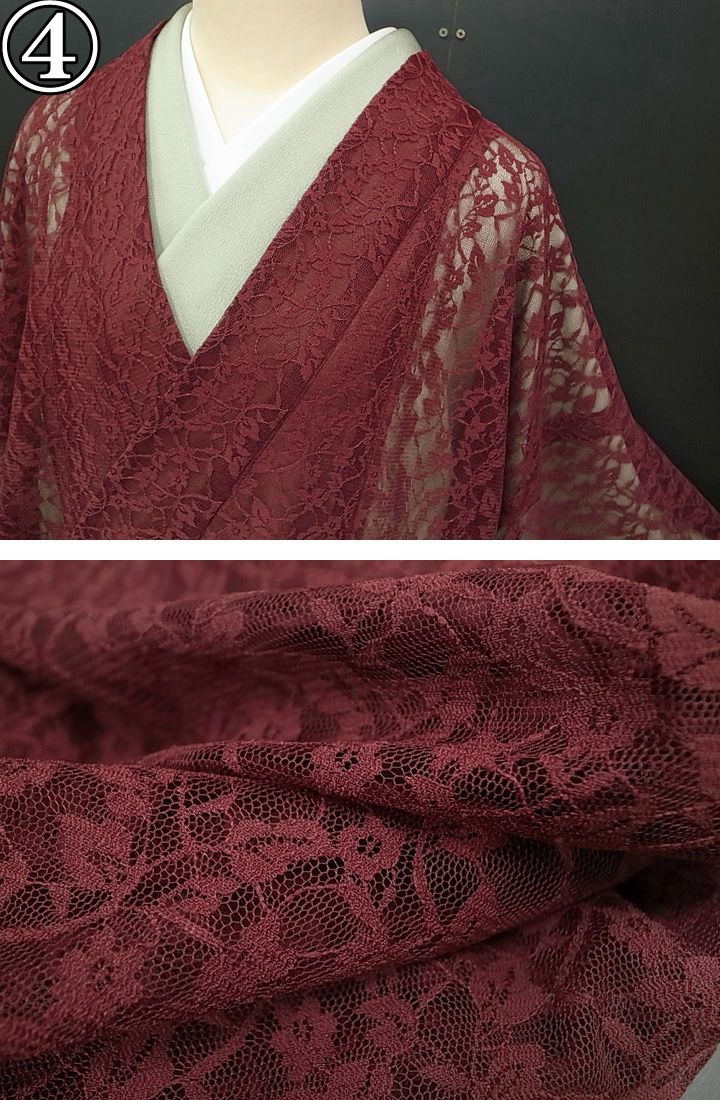 道中着 ロング レースコート 花唐草 ローズピンク 藤色 クリームベージュ ワインレッド 紫 藍紺 黒 f048rの検索結果