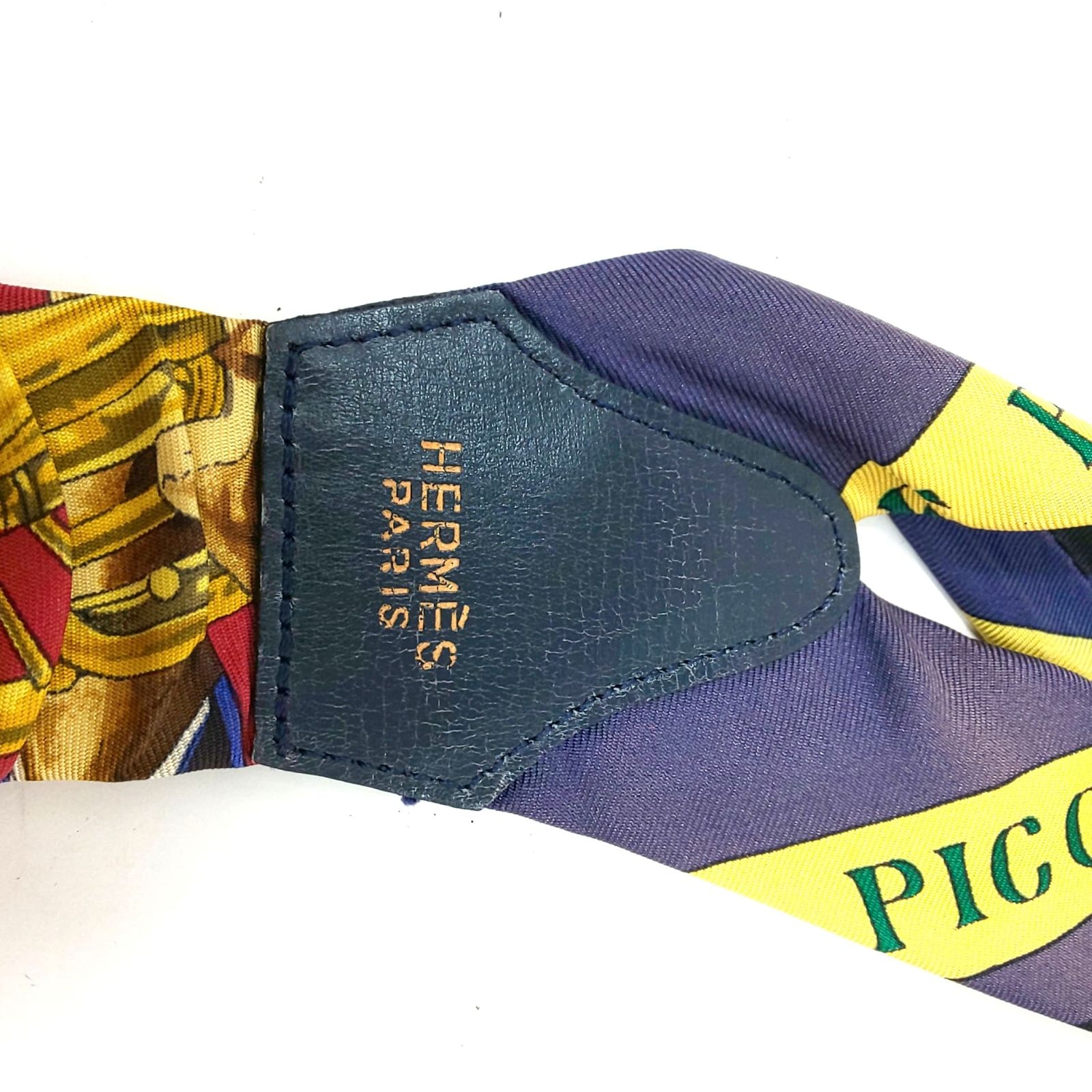 HERMES エルメス サスペンダー シルク レザー イエロー 黄色 マルチ ブラウン ゴールド金具