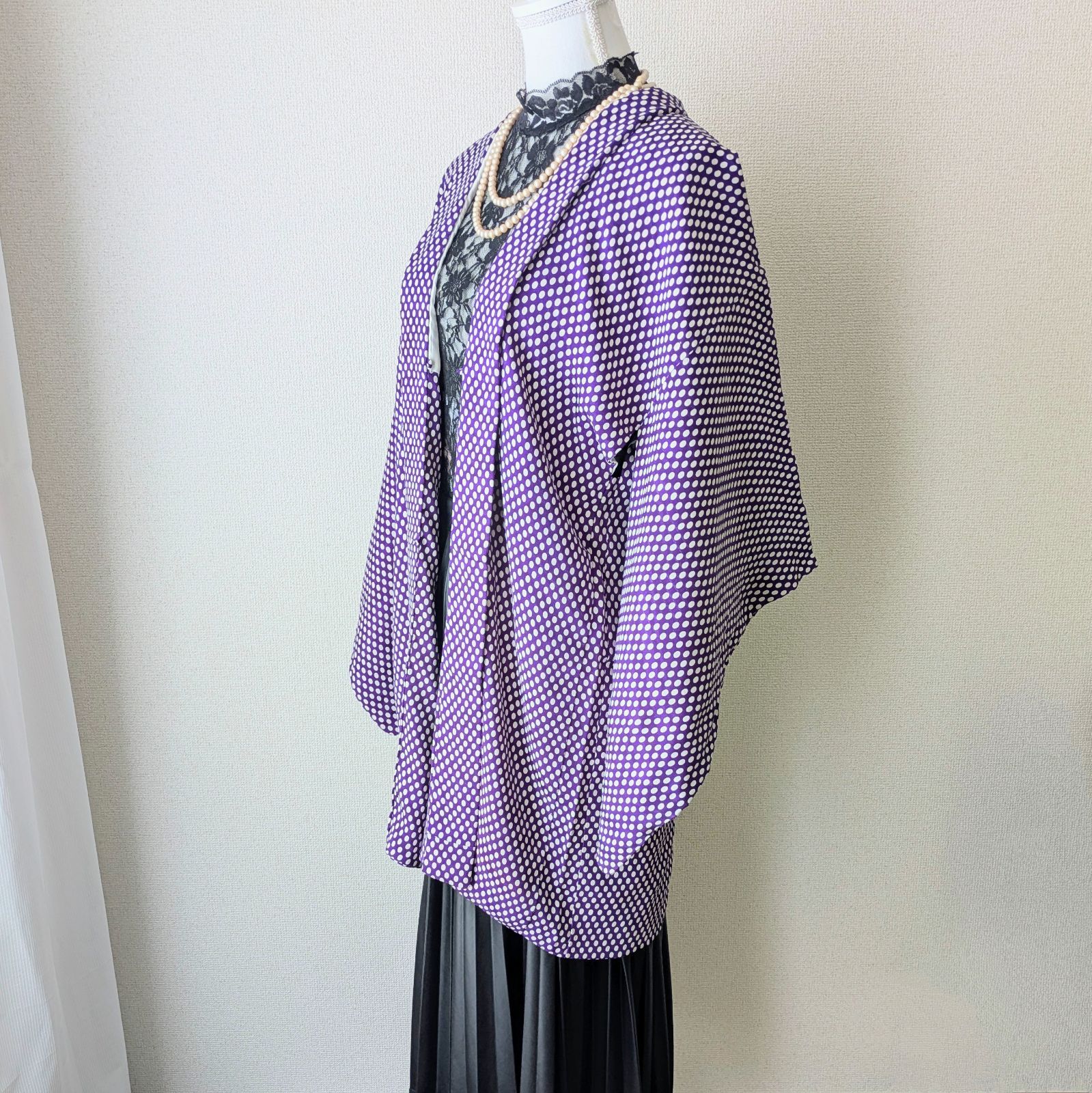 Japanese Vintage Haori Long Purple Polka dots pattern Silk Kimono Jacket Old-ⅽloth 長羽織 羽織 正絹 紫 白 水玉模様 古布 時代布 大正浪漫 和洋折衷の検索結果