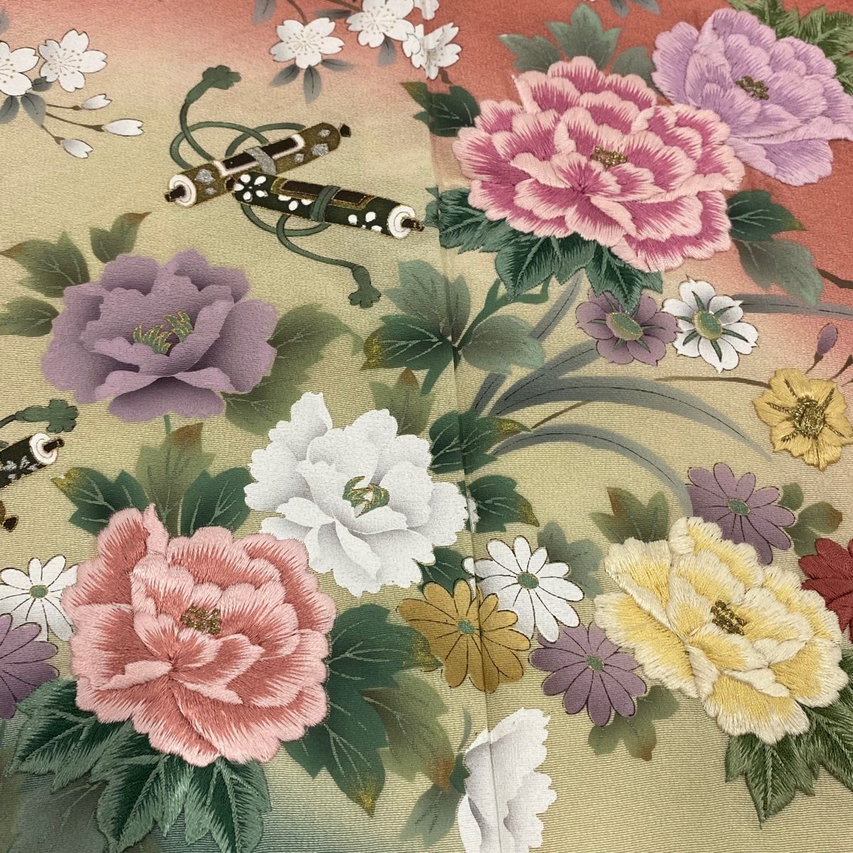 訪問着 身丈156.5cm 裄丈66cm M 袷 巻物 牡丹 刺繍 金彩 ピンク 正絹 秀品の検索結果
