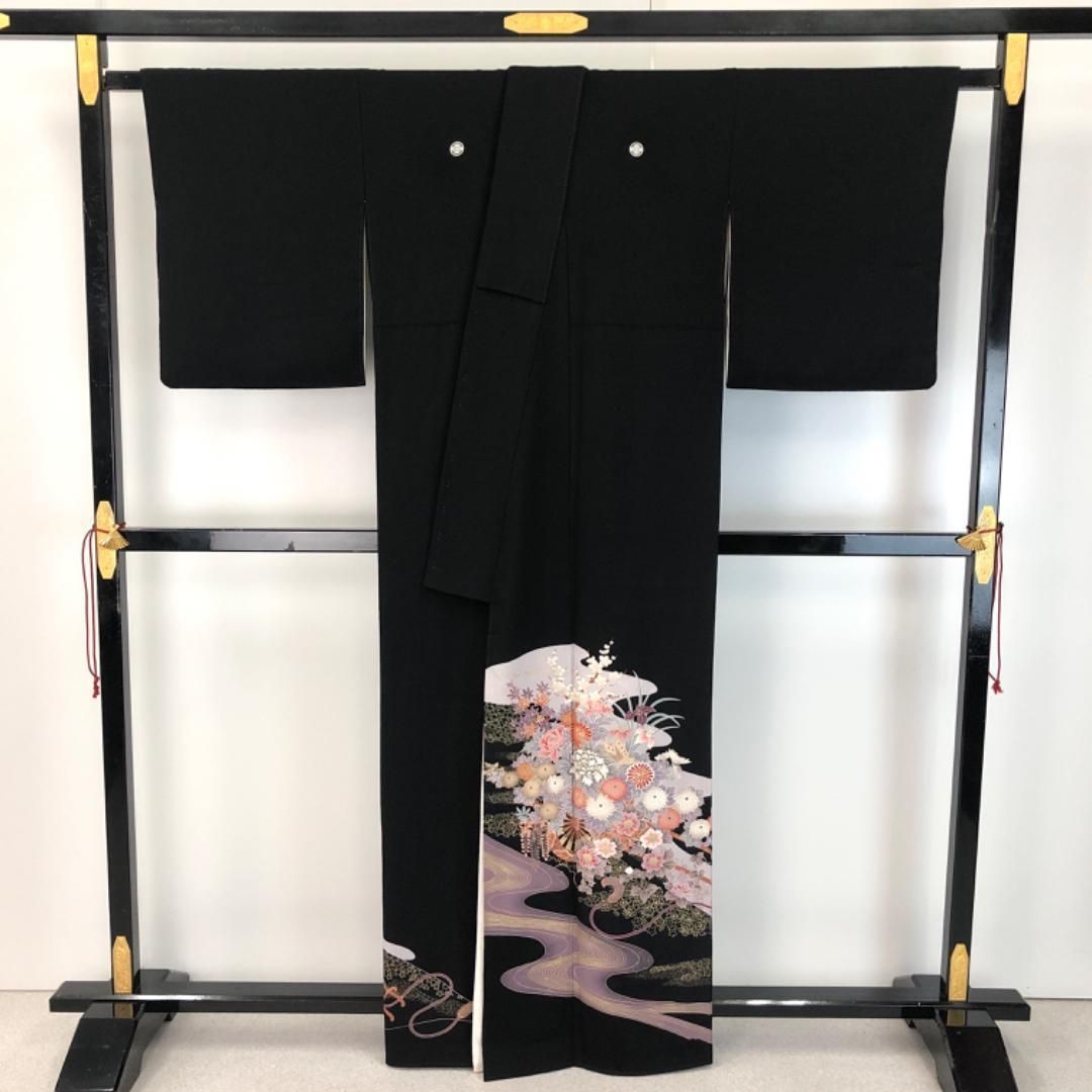黒留袖 流水 霞模様 花車 金駒刺繍 金彩 縮緬 K-5328の検索結果
