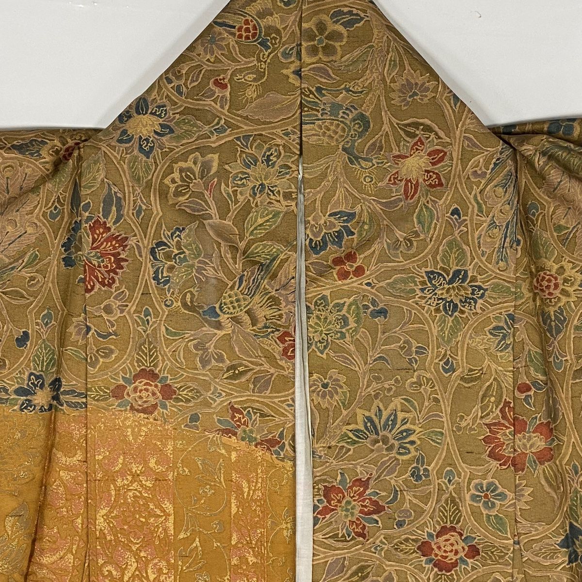 訪問着 身丈154.5cm 裄丈66cm M 袷 小糸敏 紬地 落款 草花 鳥 ぼかし 金彩 山吹茶色 正絹の検索結果