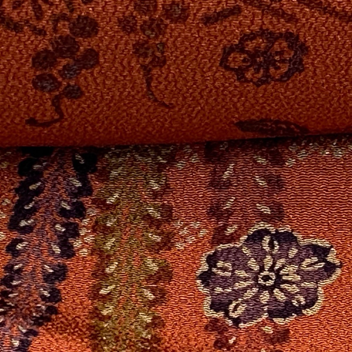 反物 秀品 小紋 草花 ヱ霞 縮緬 草木染 赤茶 正絹 GLOBALQUALITYIMPORTS_COM