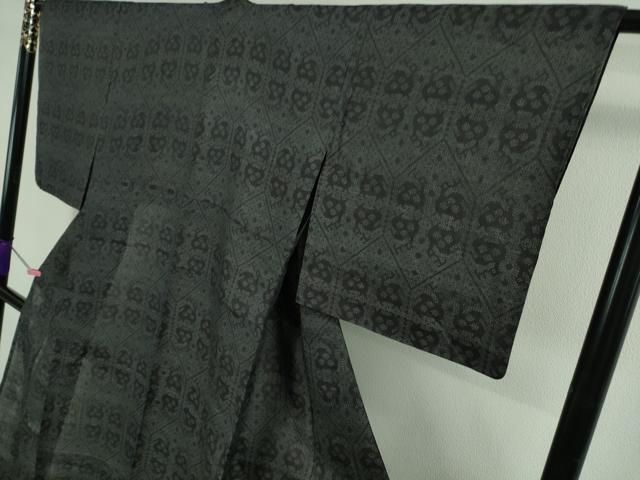 大島紬 身丈158.5cm 裄丈64.5cm M 袷 純泥染 背抜き やまと 証紙 幾何学模様 灰白 正絹