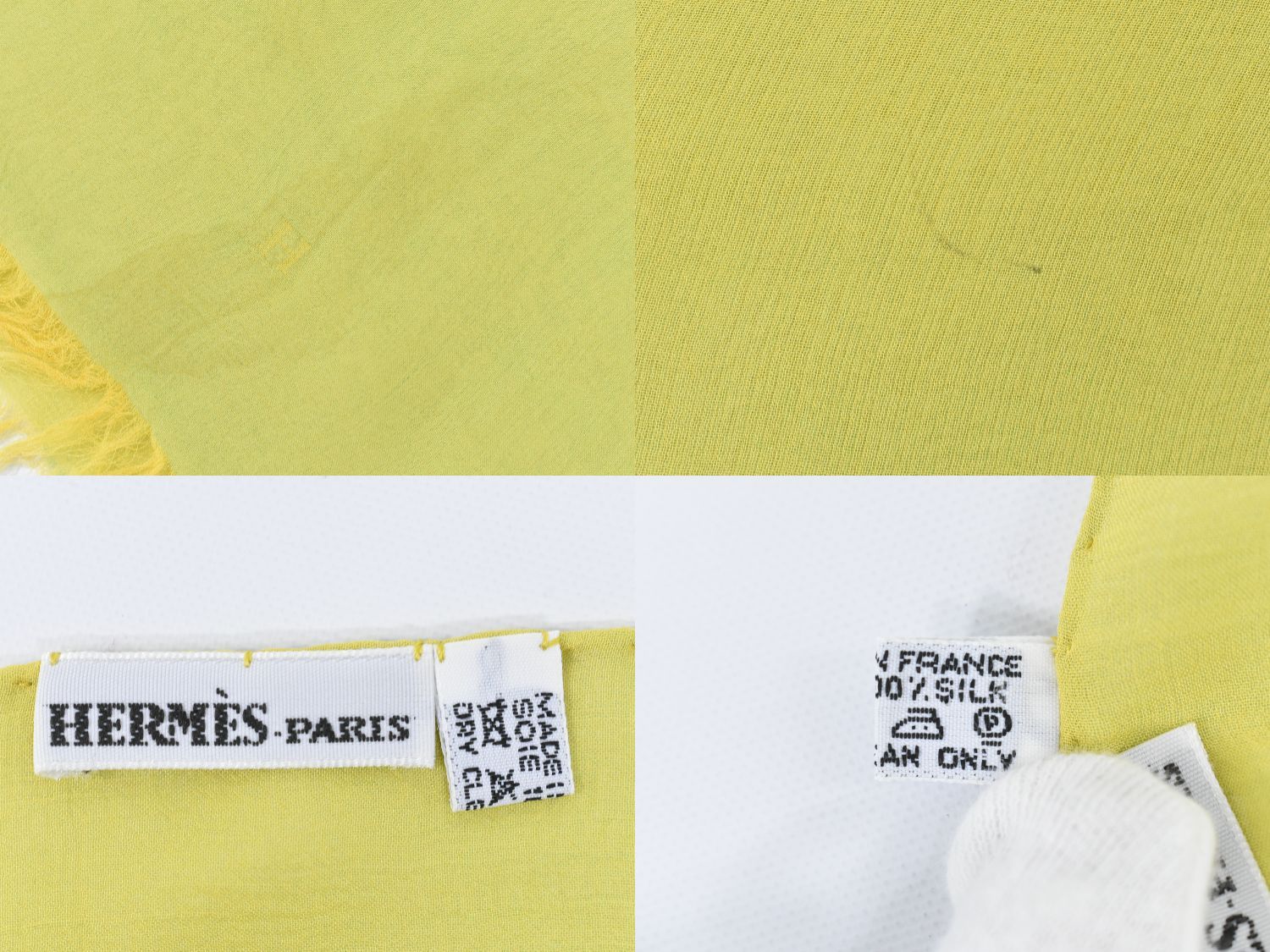 本物 エルメス HERMES シフォン フリンジ ストール ショール マフラー シルク ライトグリーン イエロー 服飾小物 フォロー割 GLOBALQUALITYIMPORTS_COM