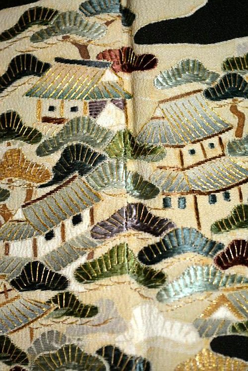 黒留袖 染繍美術 大彦 金彩 シシュウ 霞洛中洛外図 比翼付 身丈157.5cm 裄61.5cm クリーニング済 T3644 GLOBALQUALITYIMPORTS_COM
