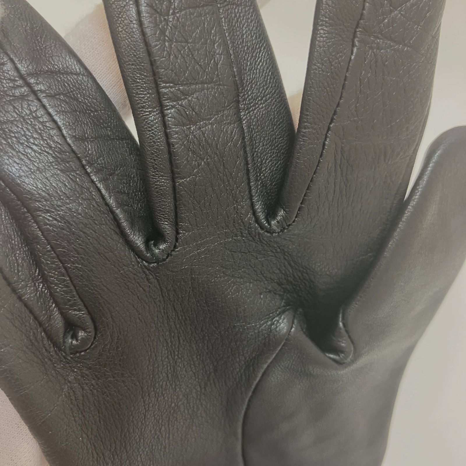 HERMES エルメス ラムスキン 羊革 裏地カシミヤ100% Hロゴデザイン グローブ 手袋 ブラック 7.5 フランス製 レディース