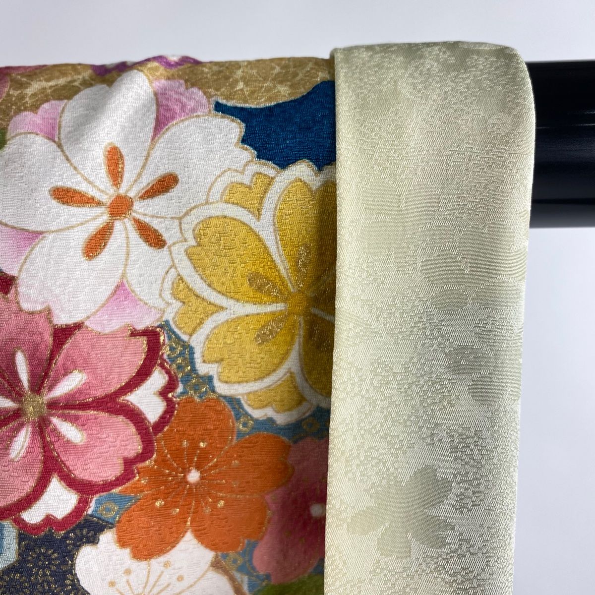 振袖 身丈166cm 裄丈66cm M 袷 草花 扇面 銀通し 金彩 青緑 正絹の検索結果
