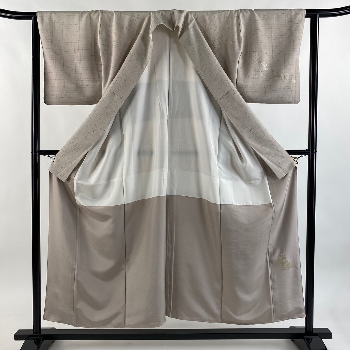 付下げ 身丈157cm 裄丈64cm M 袷 枝花 ぼかし 灰白 正絹 秀品