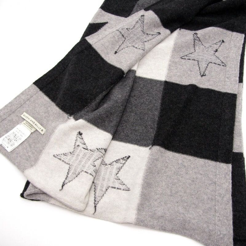 QUEENE AND BELLE クイーンアンドベル ストール カシミヤ チェック 14-080-510-0021-3-0 ショール マフラー 星柄 グレー 28011114 GLOBALQUALITYIMPORTS_COM