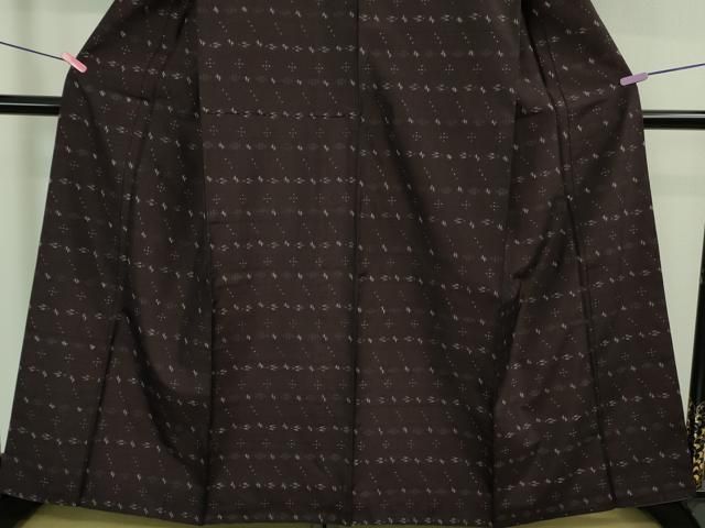 大島紬 身丈158.5cm 裄丈64.5cm M 袷 純泥染 背抜き やまと 証紙 幾何学模様 灰白 正絹
