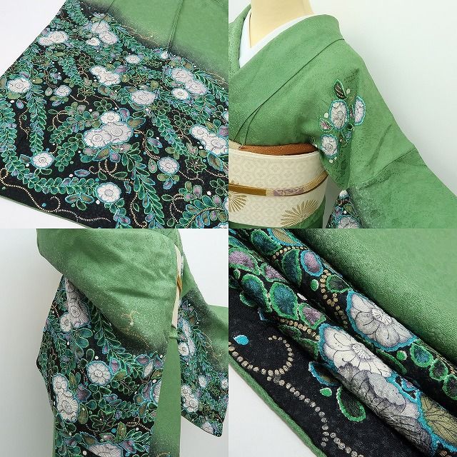 ❁tomihisa❁ 手描き友禅 椿 着物 正絹 仕付け糸付 椿が語る上品な華やかさ 訪問着 6978