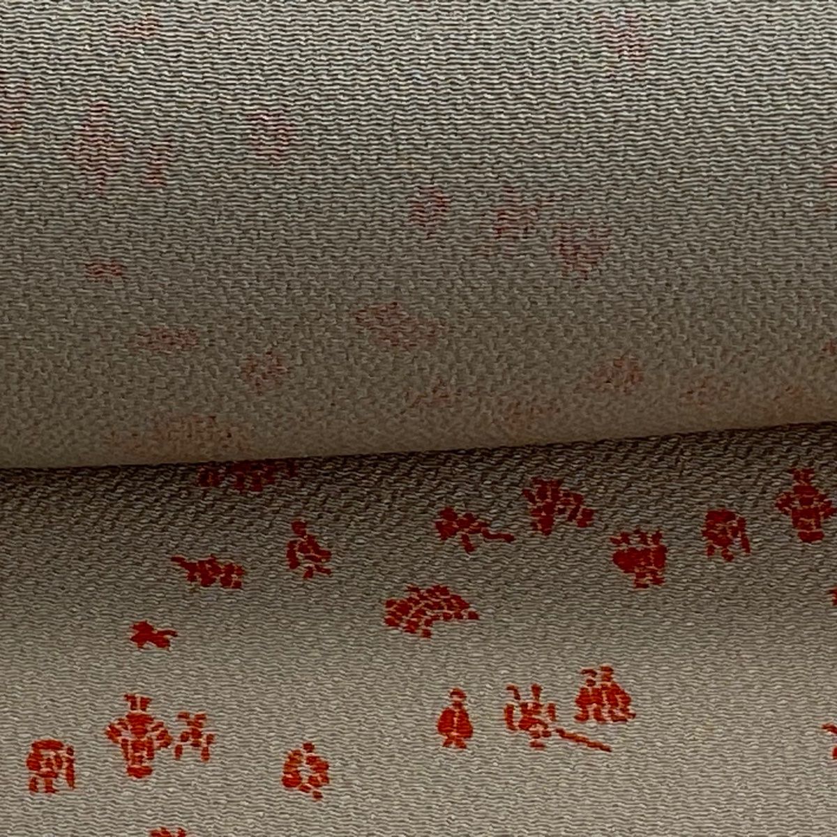反物 秀品 小紋 落款有 人物 縮緬 薄茶色 正絹 GLOBALQUALITYIMPORTS_COM