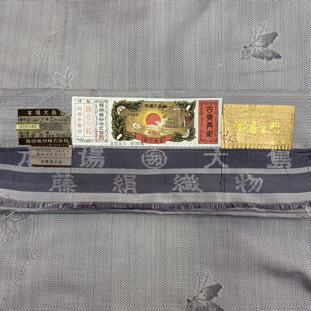 大島紬 身丈156.5cm 裄丈66cm M 袷 都喜ヱ門 証紙 蝶 露草 灰紫 正絹の検索結果