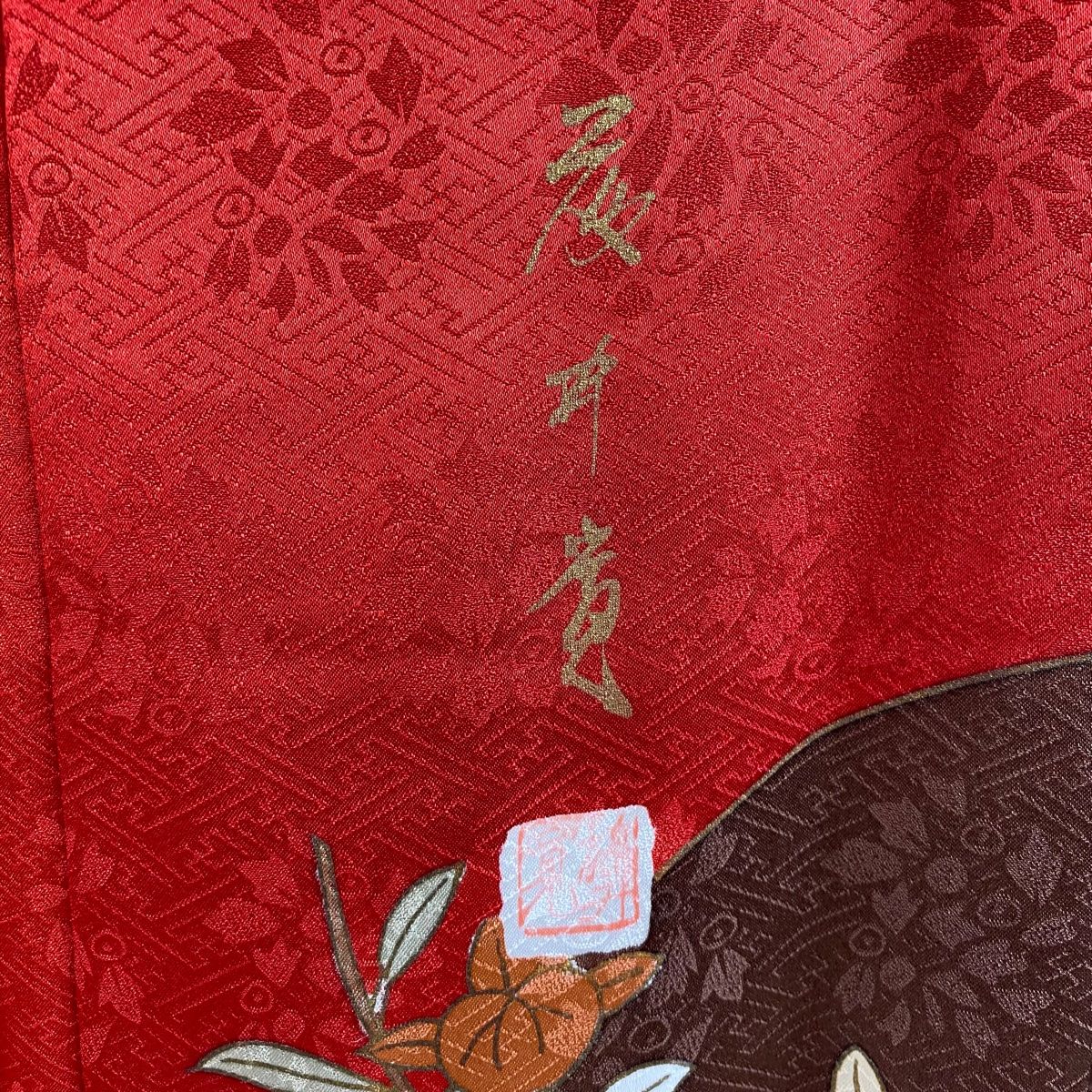 振袖 身丈159.5cm 裄丈68cm L 袷 藤井寛 落款 菊 流水 金糸 金彩 赤 正絹の検索結果