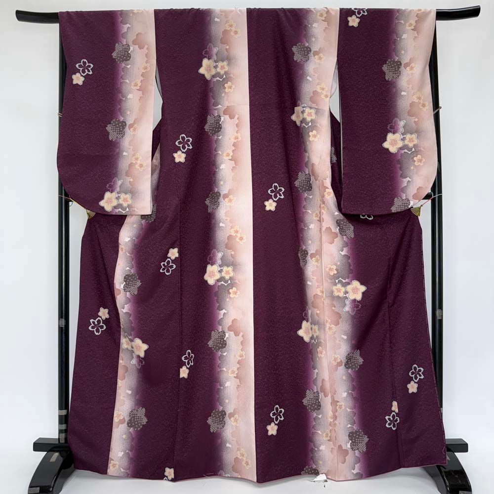 二尺袖 単品 卒業式着物 黒 紫 裄67cm Lサイズ 袴用着物 化繊 4675