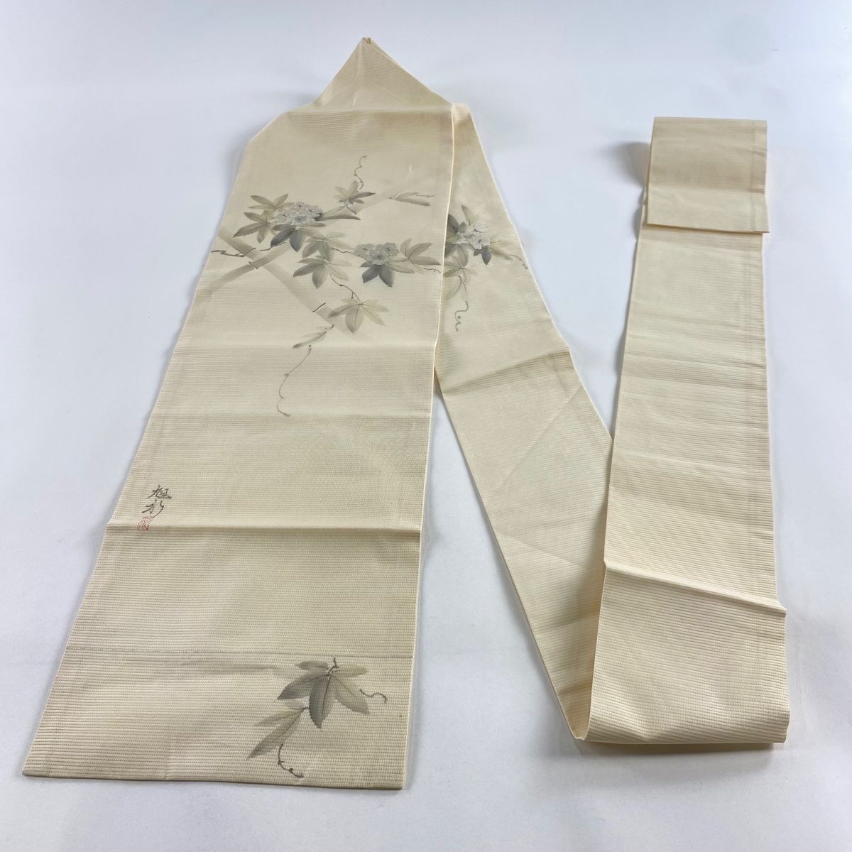 名古屋帯 秀品 落款 夏帯 草花 銀糸 銀彩 ベージュ 正絹の検索結果