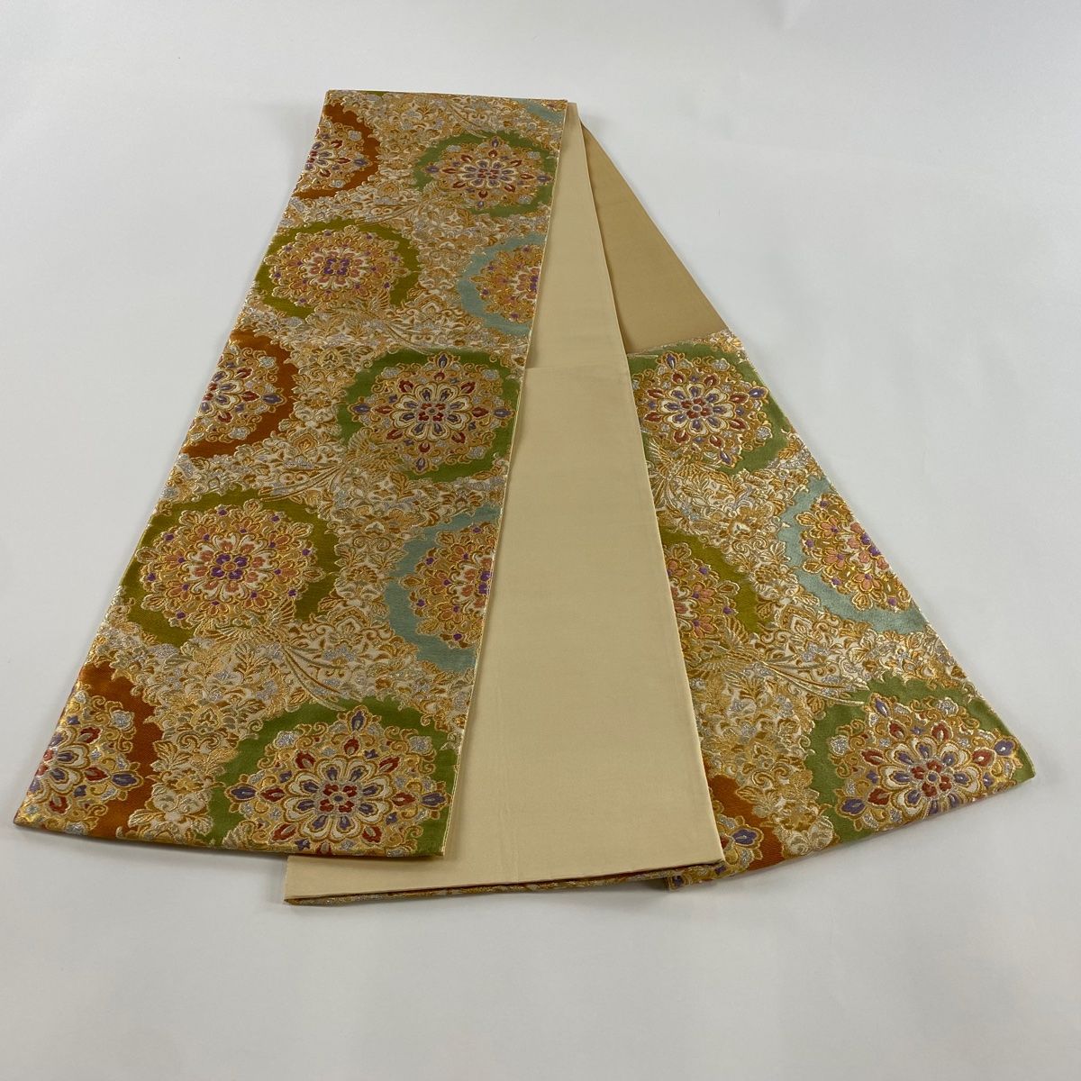 全通 洒落袋帯 リバーシブル 唐花 正絹
