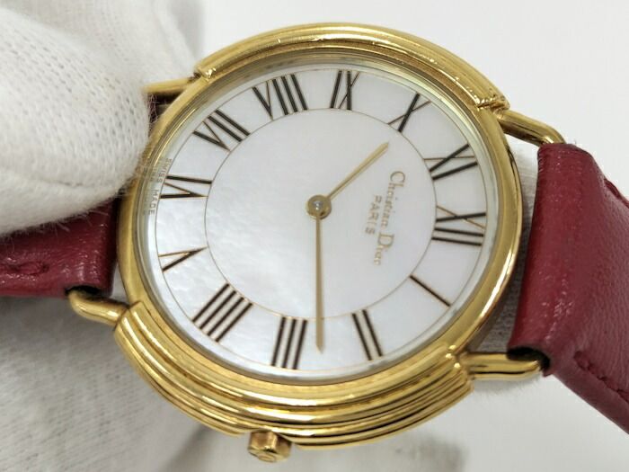 Christian Dior レディース 腕時計 クオーツ SS GP レザー レッド シェル文字盤 社外ベルトの検索結果