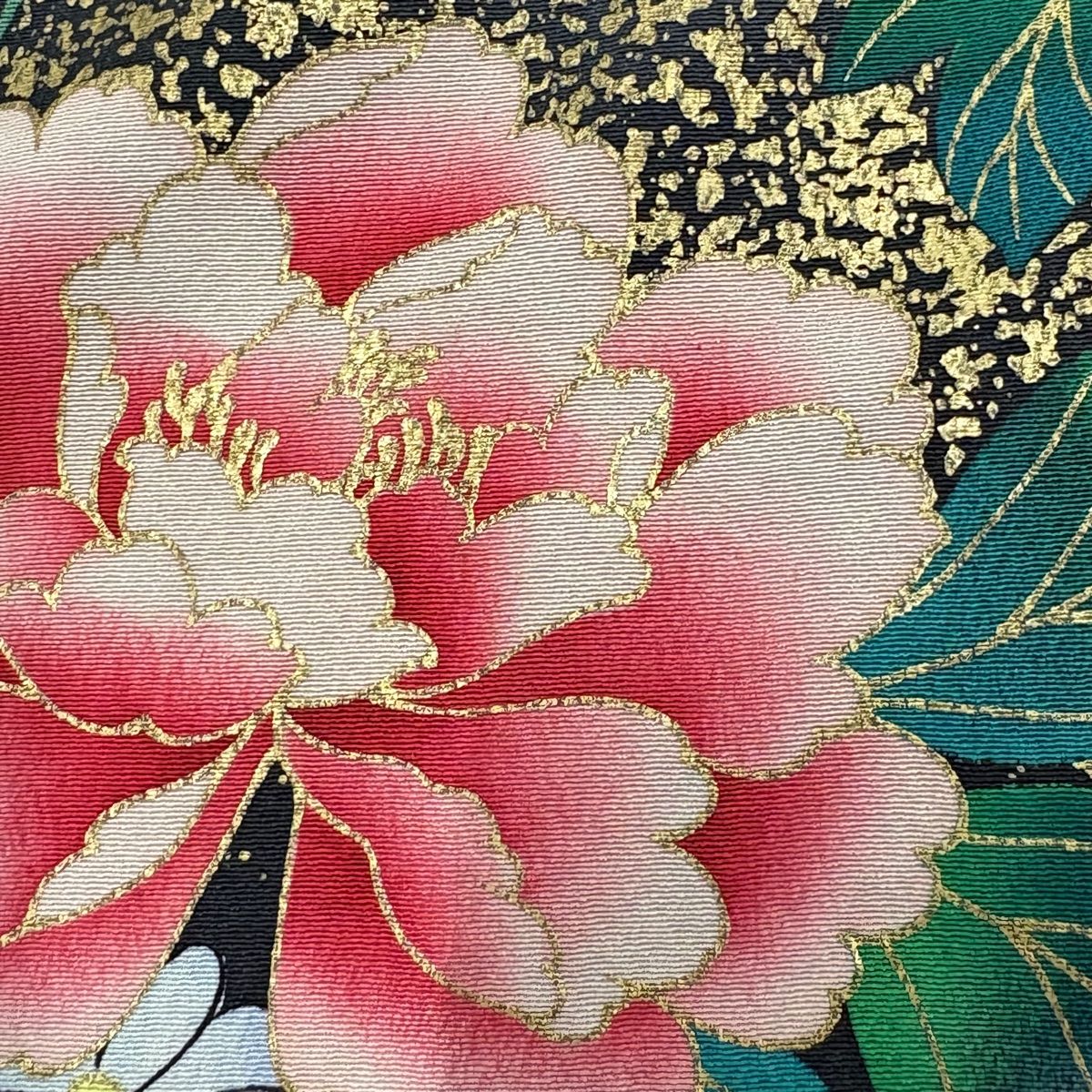 振袖 身丈165.5cm 裄丈65.5cm M 袷 牡丹 草花 金通し 金銀彩 クリーム 正絹