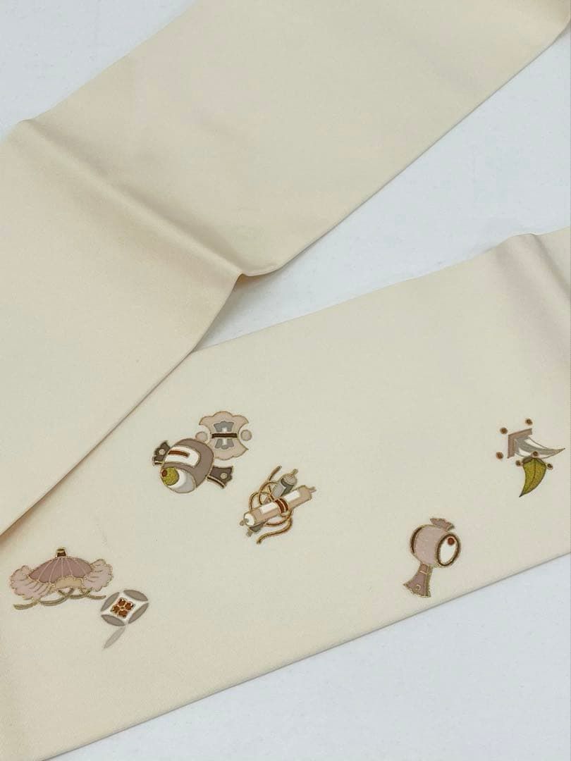 平和屋着物 塩瀬 つけ帯 駒刺繍 舞蝶唐草文 金彩 正絹 DAAY8072cm