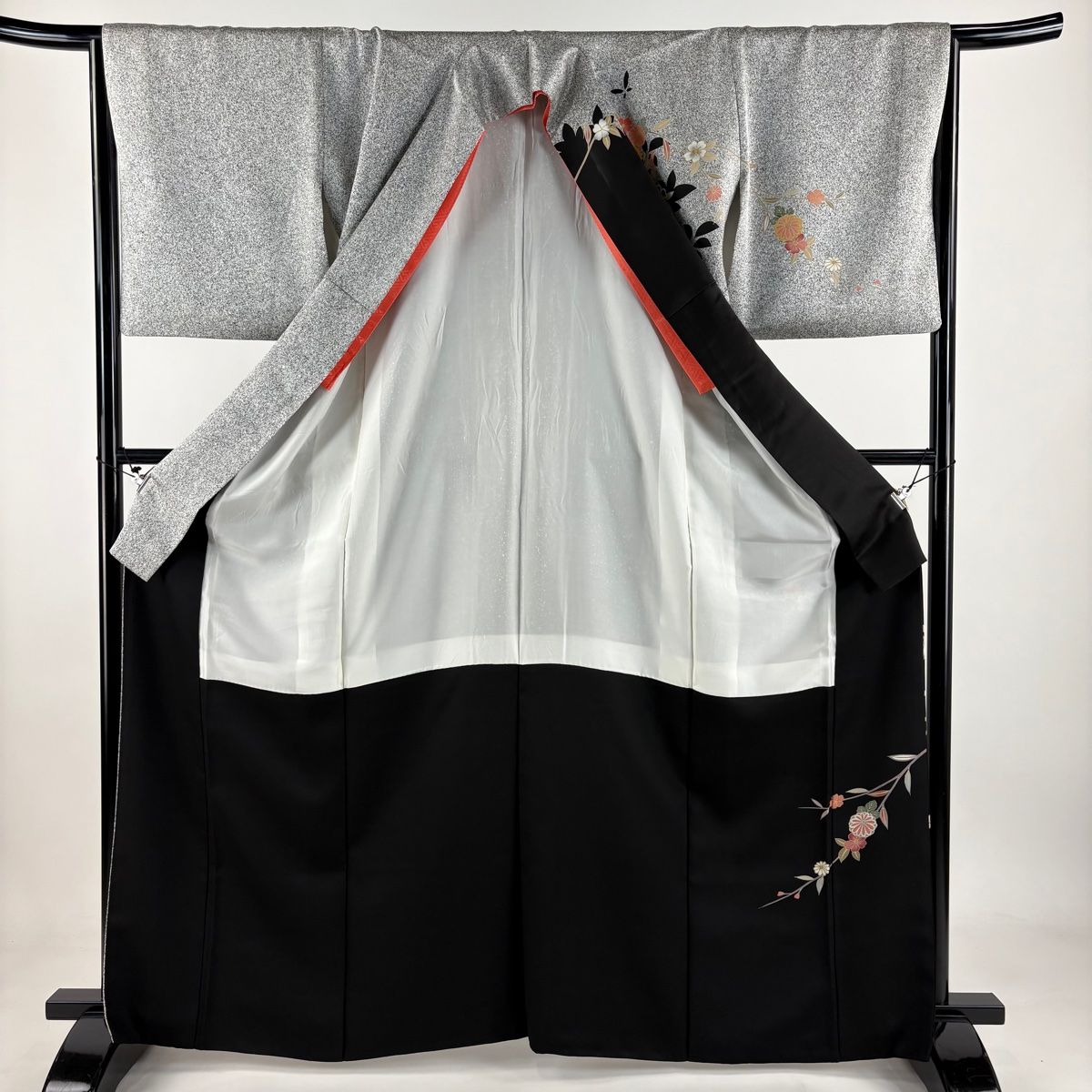 訪問着 身丈165cm 裄丈66cm M 袷 草花 シルエット 金銀彩 黒 正絹 秀品の検索結果