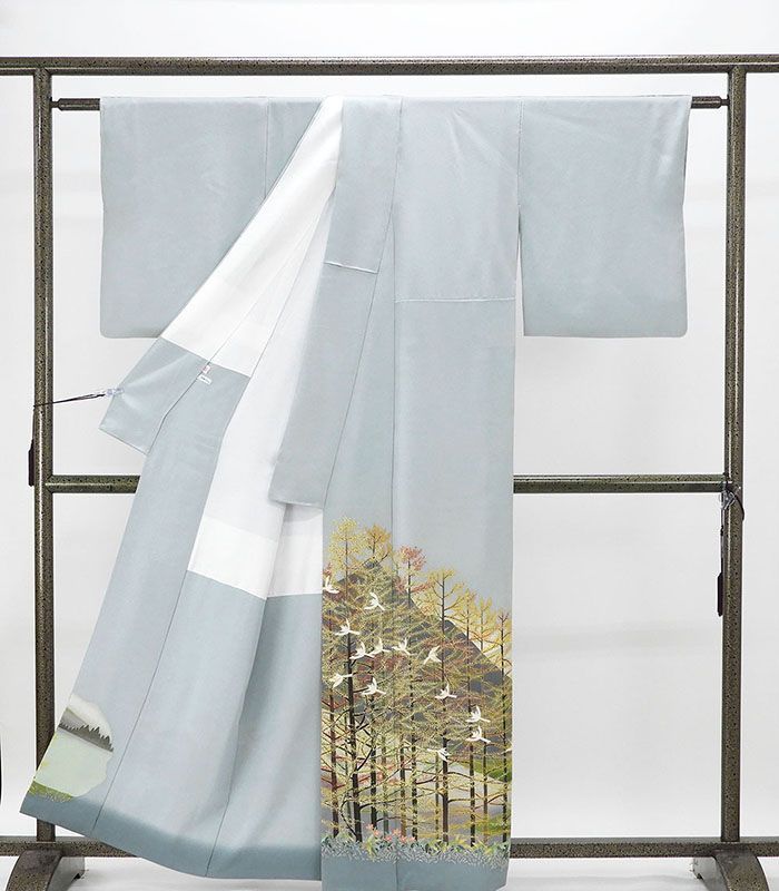 記念感謝祭 仕立無料 伝統的 本加賀友禅手描技術者西尾翠峰先生作 特撰創作 工芸草木千鳥風景文 色留袖 10012392