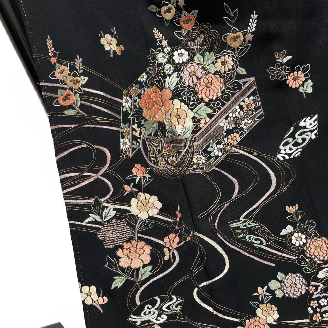 黒留袖 五つ紋 比翼付き 金糸 刺繍 華紋 着物 094b d